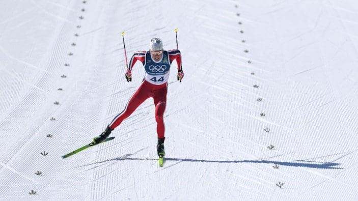 Johannes Hoesflot Klaebo, 20 dakika 36.2 saniyelik derecesiyle rakiplerini geride bırakarak 10+10 kilometre skiatlon ve sprint klasik kategorilerinin ardından oyunlardaki üçüncü altın madalyasını elde etti.