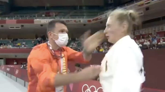 2020 Tokyo Olimpiyat Oyunları'nda antrenör Claudiu Pusa'nın, müsabaka öncesi Alman kadın judocu Martyna Trajdos'u üst üste tokatlaması tepki çekti.