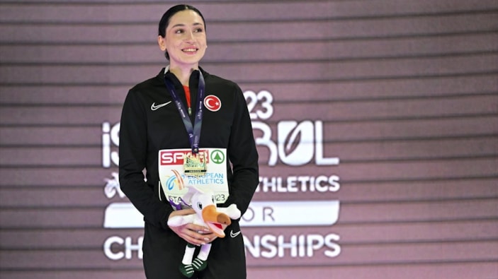 Ataköy Atletizm Salonu'nda düzenlenen şampiyonanın dördüncü ve son gününde kadınlar 3 adım atlamanın ödül töreni yapıldı.