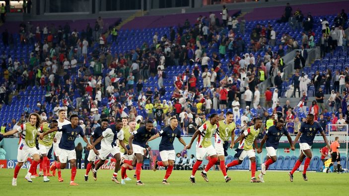 Horozlar, Dünya Kupası'nın ikinci maçında Danimarka'yı Mbappe'nin golleriyle 2-1 yenerek puanını 6'ya yükseltti ve gruptan çıkmayı garantileyerek son 16'ya kaldı.