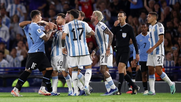 Dünya Kupası Güney Amerika Elemeleri'nde Arjantin ile Uruguay karşı karşıya geldi. Mücadelenin 26. dakikasında ise iki takım futbolcuları arasında gerginlik yaşandı.