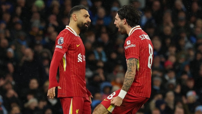 Premier Lig lideri Liverpool, deplasmanda son şampiyon Manchester City'yi Mohamed Salah ve Dominik Szoboszlai'nin golleriyle 2-0 mağlup etti.