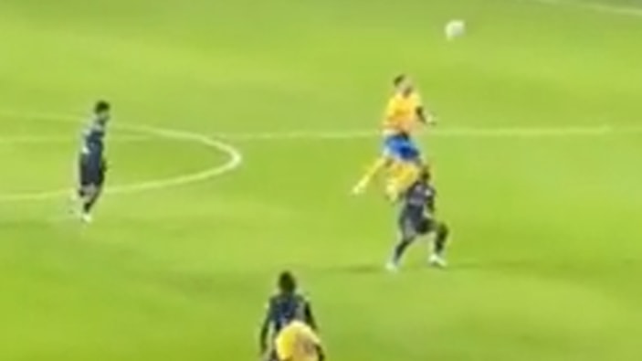 Karşılaşmanın ikinci yarısında ortaya ilginç bir görüntü çıktı. 38 yaşındaki yıldız futbolcu Cristiano Ronaldo, rakibiyle girdiği hav mücadelesinde adeta uçtu.