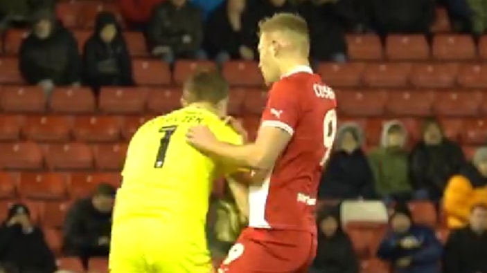 Cosgrove, hakem atışı sonrası topu önünde bekletip vakit geçiren Wycombe kalecisi Max Stryjek'e hamle yaptı.