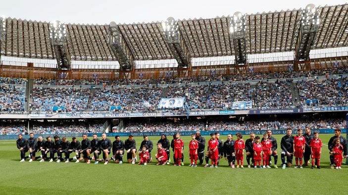 Napoli'nin Diego Armando Maradona Stadı'nda Atalanta'yı ağırladığı ve 3-0 yenildiği karşılaşma önündeki seremoni, ilginç bir protestoya sahne oldu.