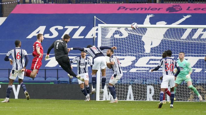 İngiltere Premier Lig'in 36. haftasında Liverpool, West Bromwich Albion'ı kaleci Alisson Becker'in 90+5. dakikada attığı golle 2-1 yenerek Şampiyonlar Ligi iddiasını sürdürdü.