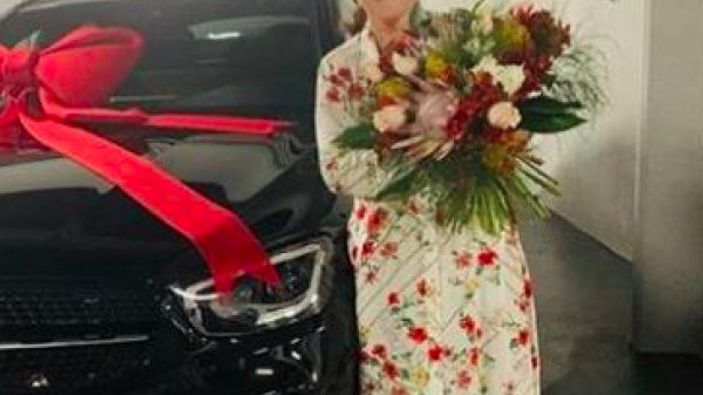 Anne Dolores ise bu arabayla çekilen bir fotoğrafını, sosyal medya hesabından paylaştı.