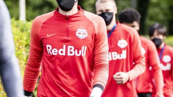 Haftalar sonra çalışmalara başlayan Salzburglu futbolcular, altılı gruplar halinde maske takarak antrenman yaptı.