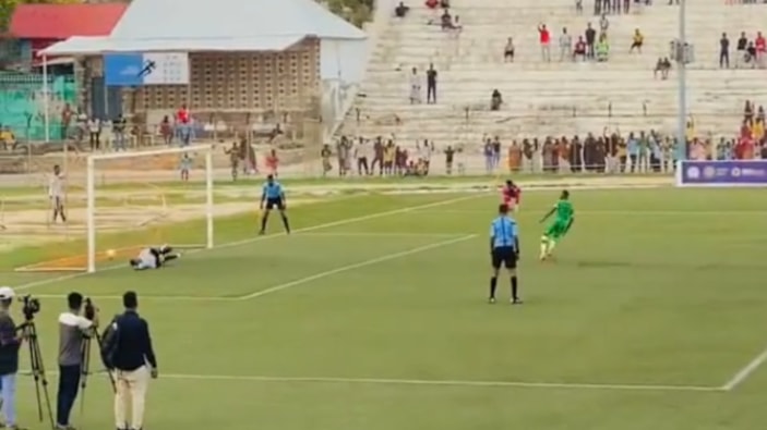 Somali Ligi'nde oynanan bir futbol maçında ortaya çıkan görüntüler sosyal medyada çok konuşulur hale geldi.