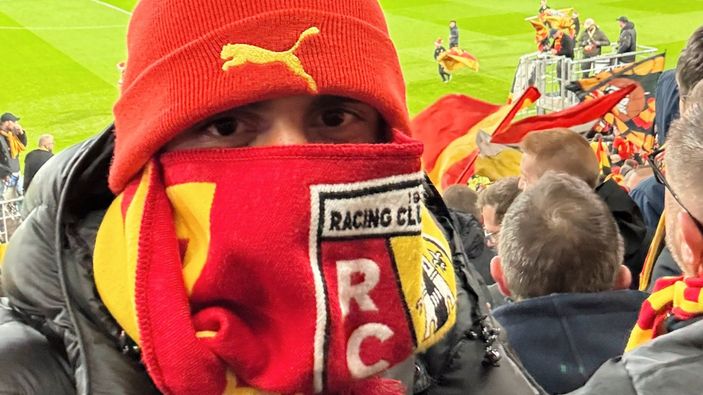 Bollaert-Delelis Stadyumu'nda oynanan müsabakayı izlemek için tribünleri dolduran Lens taraftarları arasına biri kamufle oldu.