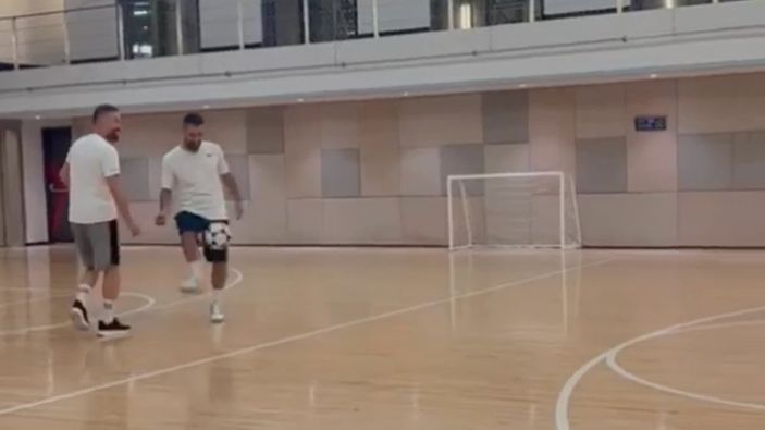 Galatasaray'da futbolu bırakan Arda Turan, basketbol sahasında ayağıyla basket attığı görüntüleri paylaştı.