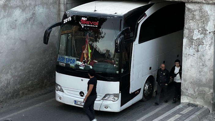 3. Lig ekiplerinden Erciyes 38 FK ile pazar günü karşılaşacak olan Ağrı 1970 SK'nin takım otobüsü Kayseri'de alt geçide sıkıştı.