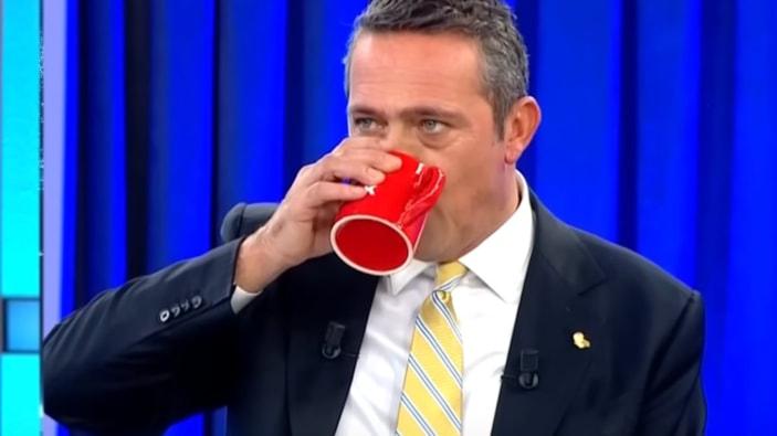 Koç'un canlı yayında kupa bardaktan su içtiği an futbolseverlerin dikkatini çekti. Sosyal medyada kullanıcılar, "Ali Koç'un kaldırdığı tek kupa" yorumunda bulunarak başkanın başarısızlığına dikkat çekti.