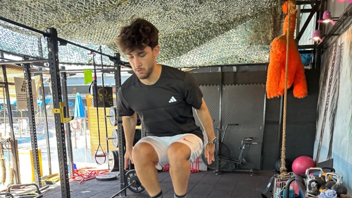 Özel antrenör Samet Kösemen eşliğinde çalışan Ali Turap Bülbül, dayanıklılık ve çabukluk antrenmanları yapıyor.