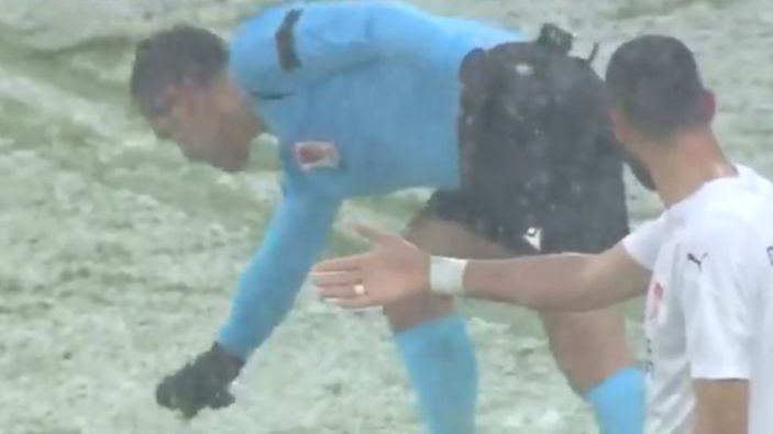 Dün karlar altında oynanan Başakşehir-Sivasspor maçında, frikik atışı öncesi barajın önüne köpük sıkan hakem Alper Ulusoy, sosyal medyada gündem oldu.