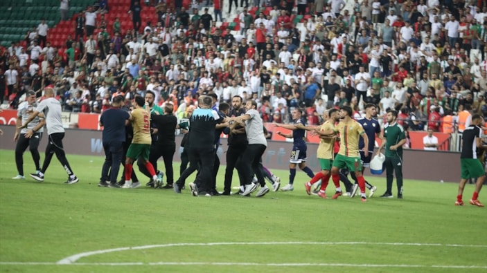Maçın ardından iki takım futbolcuları ve teknik heyet birbirine girdi. Yeşil sahada başlayan kavga tribünlere sıçradı.