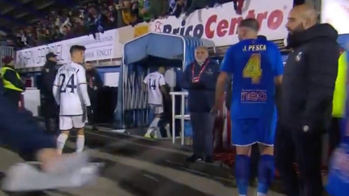 Real Madrid ile oynayacakları Kral Kupası maçı öncesinde Jude Bellingham'ın formasını istediğini belirten Arandina'nın savunma oyuncusu Jorge Pesca, fikrini değiştirerek Arda Güler'den forma istedi.