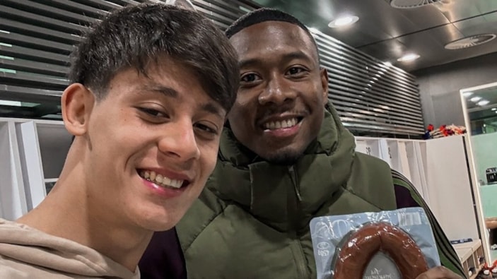 Milli yıldızımız Arda Güler'in, David Alaba ile birlikte çekildiği bir fotoğrafta Avusturyalı futbolcunun elinde sucuk olduğu görüldü. Alaba ve Arda'nın bu pozu sosyal medyada kısa sürede beğeni yağmuruna tutuldu...