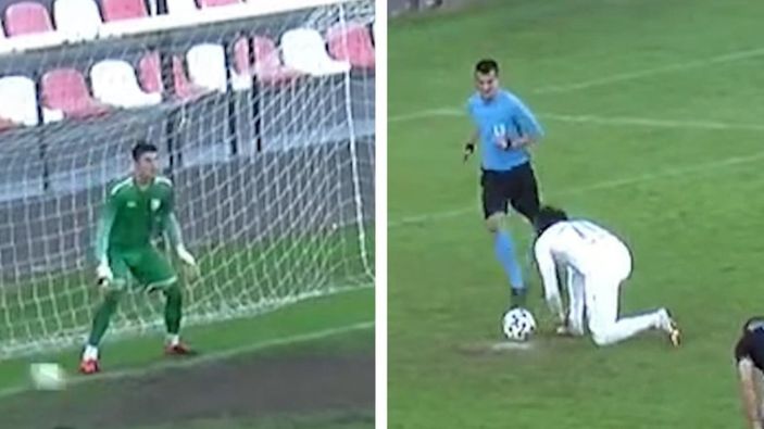 Ayakkabı bağlama taktiğiyle penaltıdan gol attı - İZLE
