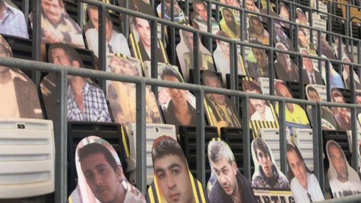 Beşiktaş yönetimi, daha önce hayatını kaybeden sarı-lacivertli taraftarların fotoğraflarını deplasman tribünlerine yerleştirdi.