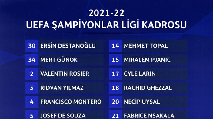 BEŞİKTAŞ’IN UEFA’YA GÖNDERDİĞİ KADRO