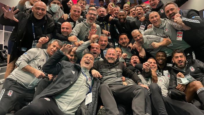 Beşiktaş'ın soyunma odasındaki galibiyet pozu