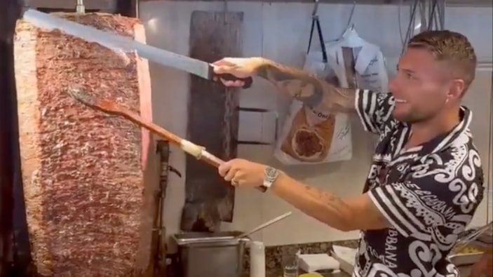 Beşiktaş'ın İtalyan yıldızı Ciro Immobile, döner tezgahının başına geçerek kesim yaptı. Golcü oyuncunun bu anları sosyal medyada gündem oldu.