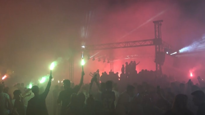 Taraftarların meşaleleri adeta görsel şölen oluşturdu.
