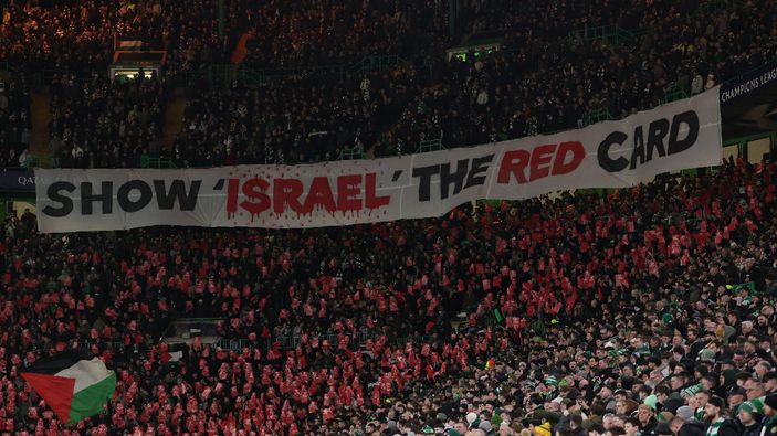 Celtic, maçta Alman ekibi Bayern Münih'e 2-1 yenilirken, İskoç taraftarlar takımlarına desteğin yanı sıra tribünlerde Filistin bayrakları açarak İsrail'i protesto etti.