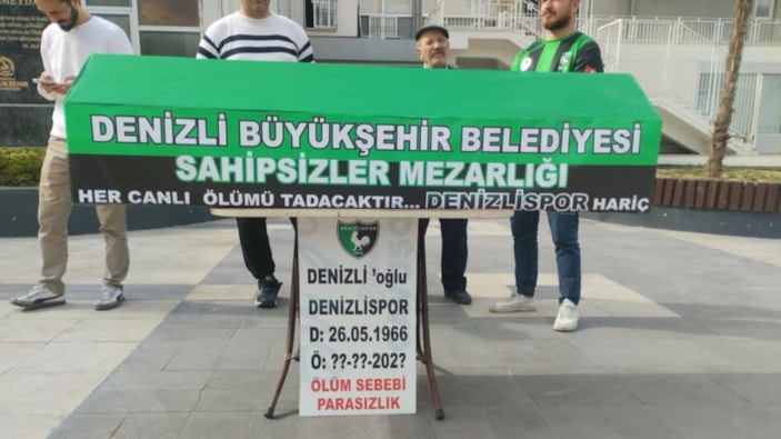 Denizlispor Başkanı Erhan Ergil’in başlattığı açlık grevinin ardından Denizlispor taraftarları meydanda tabutlu eylem yaptı. Denizlispor’un tabutunu taşıyan taraftarlar, kulübün sahipsiz bırakılmasına tepki göstererek "Denizlispor her geçen gün ölüyor ama kimse görmüyor ve duymuyor" dedi.
