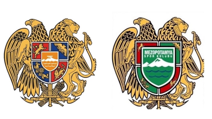 Ermenistan devlet arması (Solda) - Mezopotamya Spor Faaliyetleri logosu (Sağda)