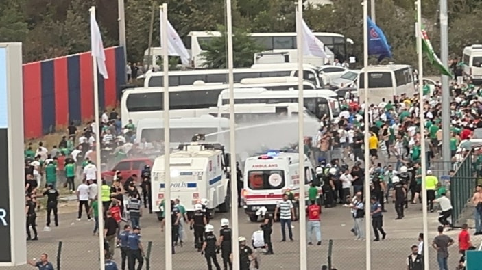 Bursaspor taraftarlarının polis ekiplerine taş ve yabancı maddeler attığı görüldü.