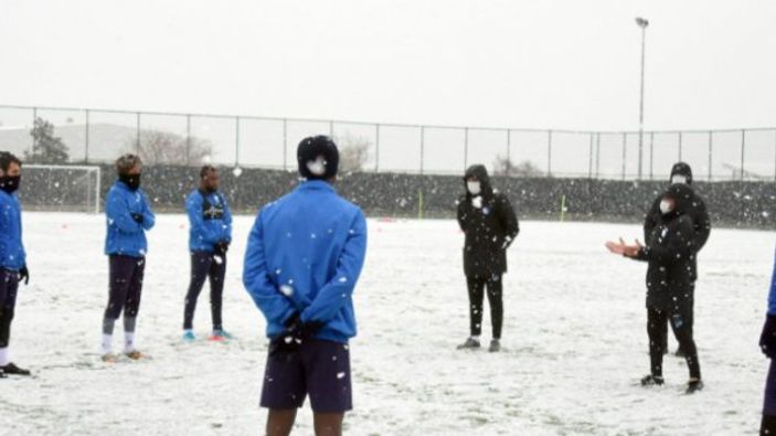 Erzurumspor, ilk idmanını kar yağışı altında yaptı