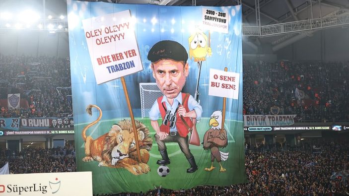 Trabzonspor yöneticileri ve güvenlik güçleri tarafından stadyuma girişi engellenmeyen pankartta, Fenerbahçemizi temsil eden kanarya figürü av tüfeğinin namlusunda yer alıyordu.