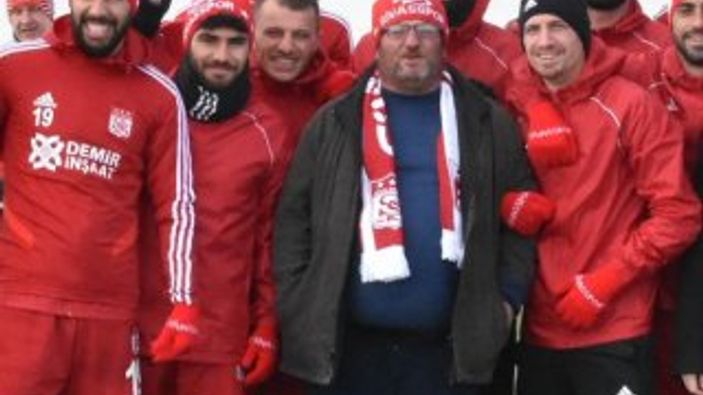 Beşiktaş galibiyetini kutlarken amatör videoya yansıyan yöresel şiveyle 'Zabaha kadar buradayız' sözleri ile sosyal medyanın gündemine düşen Demir Grup Sivasspor taraftarı Ahmet Yaşin, antrenmana gelerek futbolcularla buluştu.
