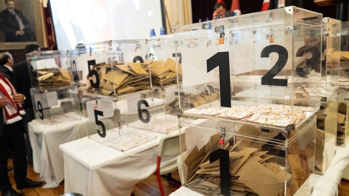 Oy kullanma süresinin dolmasının ardından kapatılan 20 sandık, görevliler tarafından sayım için Tevfik Fikret Salonu'na getirildi.