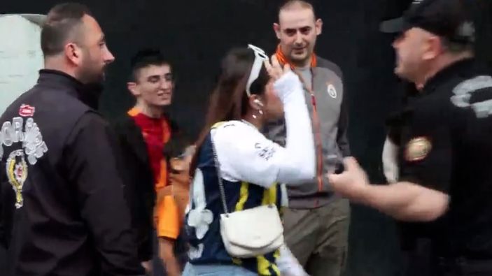 Derbi öncesi Florya Metin Oktay Tesisleri'nde toplanan Galatasaraylı taraftarlar, o sırada tesislerin önünden geçen Fenerbahçe formalı bir kadına tepki gösterdi.