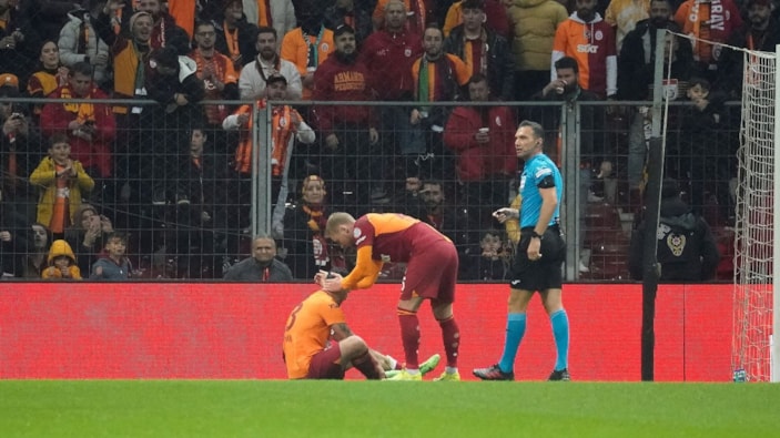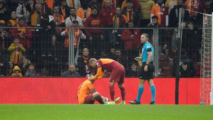 Galatasaray sağlık ekibinin tedavisinin ardından kendini deneyen Kaan, 19. dakikada kendini yere bıraktı ve oyuna devam edemedi.