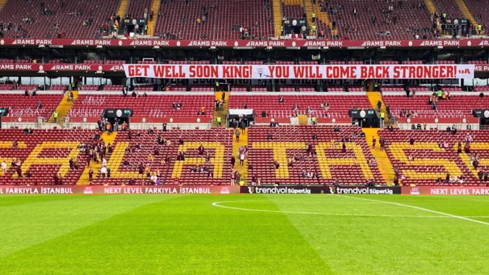Tribüne asılan pankartta "Geçmiş olsun kral. Daha güçlü döneceksin." ifadeleri yer aldı.