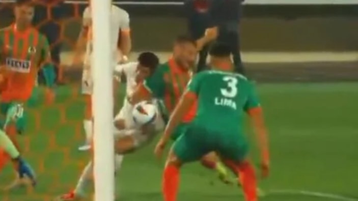 Alanya Oba Stadyumu'nda oynanan müsabakanın ilk yarısında tartışmalı bir pozisyon yaşandı.