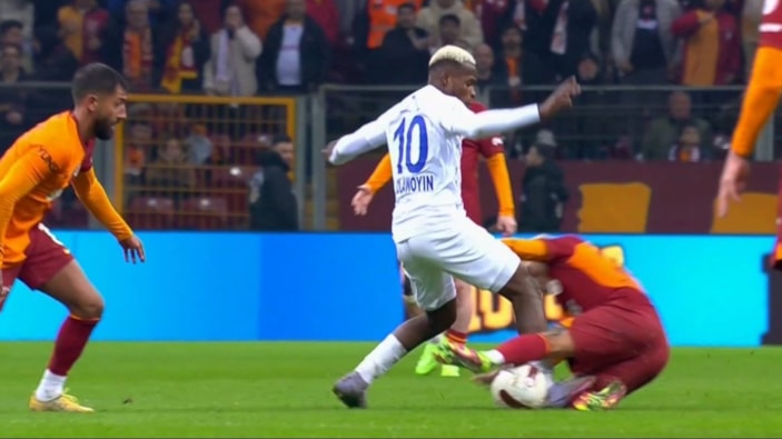 Ali Sami Yen Spor Kompleksi'nde oynanan mücadelenin ilk yarısında tartışmalı bir pozisyon yaşandı.