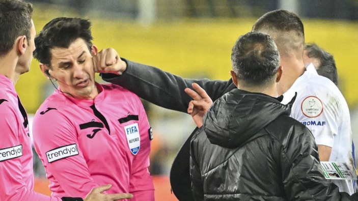 Maçtan sonra düdüğü çaldıktan sonra oyuncular teşekküre ve tebrik etmeye geldi. Ki bu da görünüyor zaten ekranlarda. O arada Emre Belözoğlu’nun elini, kollarını gördüm. O arada rakip teknik direktör İlhan Palut onu tuttu. Tam biz ne oluyor, ne bitiyor, neler deniyor diye oraya odaklandığımızda eylemi yapan şahıs, sol tarafımdan yumruğu vurdu. Ondan sonrasını hatırlıyor muyum, hatırlamıyorum. Çünkü yerde darbe yiyordum. Zaten polis de temsilciler de bunu beklemiyordu. Beklenmeyen bir durum, çünkü oluşabilecek hiçbir hadise yoktu. Sadece bu durumu provoke eden teknik direktördü. Başka hiç kimse değildi.