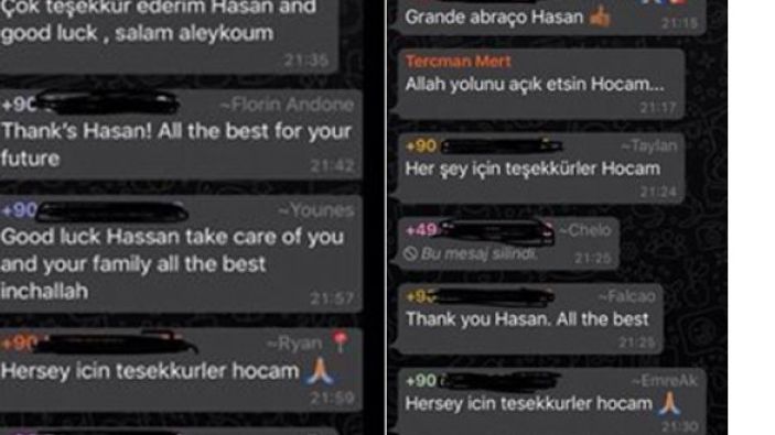 Galatasaray'da ayrıldıktan sonra futbolcuların kendisine attığı mesajları yayınlayan Hasan Şaş, fotoğrafın altına "Futbolcularla arası bozuktu diyenlere cevabımdır" notunu düştü.