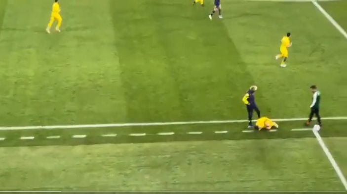 Tribünden çekilmiş görüntülerde, rakip takımda yerde İbrahim Yılmazı'ı gören Jesus, yanına giderek sırtına şakayla karışık bir tekme atarak futbolcunun yerden kalkmasını istiyor.