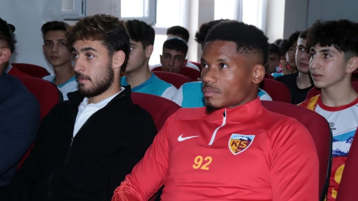 Kayserisporlu futbolcular Kartal Kayra Yılmaz ve Julian Jeanvier, öğrencilerle buluşarak soruları yanıtladı.