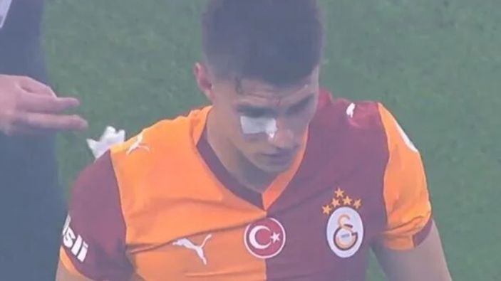 Süper Lig'de Galatasaray'ın Fenerbahçe ile oynadığı derbide Kazımcan Karataş'a tribünden yabancı madde geldi.