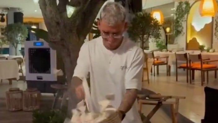 Galatasaray'ın Uruguaylı orta saha oyuncusu Lucas Torreira, Bodrum'da yemek yediği bir mekanda eğlendi. Torreira mekanda tabak kırdığı anları sosyal medya hesabından paylaştı.
