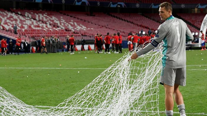 Mbappe, Di Maria, Neymar gibi yıldızlara geçit vermeyen Neuer, maç sonu kale ağlarını sökerek yanında götürmüştü.