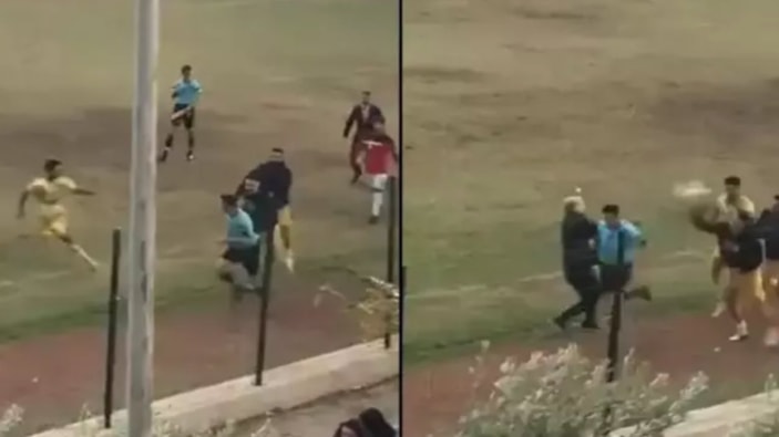 Olayın üzerine orta hakem maçı erteledi. Darp raporu alan hakemler, karakola giderek futbolcudan şikayetçi oldu.