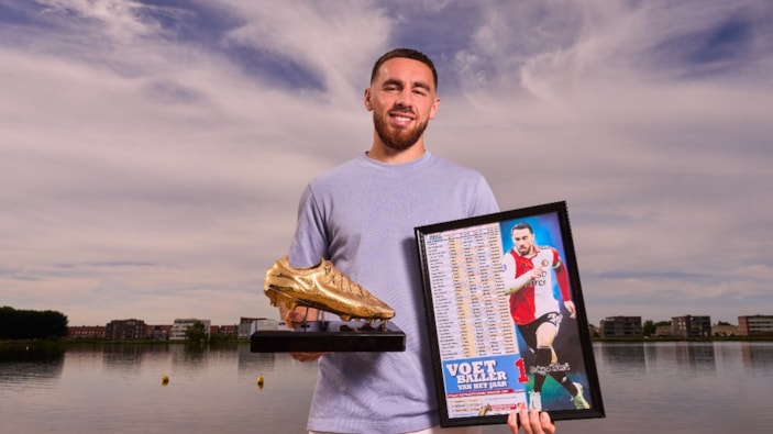 22 yaşındaki futbolcu, geçen yılki takım arkadaşları Santiago Giménez ve David Hancko, geçen sezon Twente'de forma giyen Vaclav Cerny ve PSV Eindhoven'dan Xavi Simons ile ödül için yarıştı.
